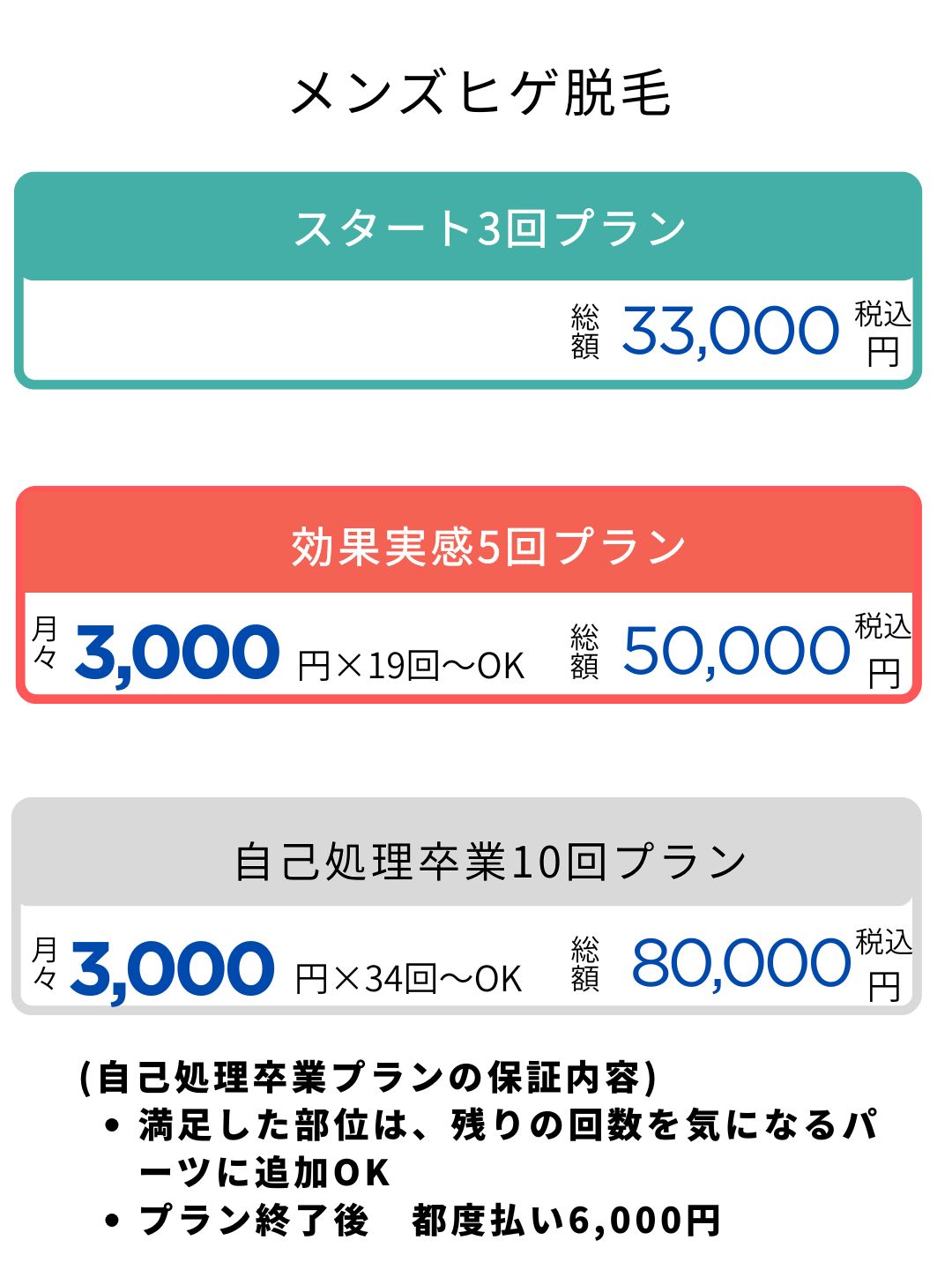 •追加シェービング代など、記載以外の追加料金はありません