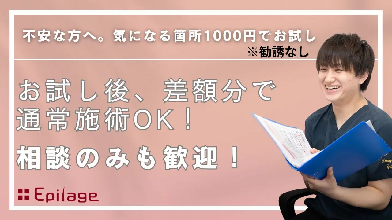 当サロンでは、1人1人の毛質肌質に合わせた適切な威力のオンリーワンの脱毛を心がけておりますので、まずは状態を見させて頂き、問題ないようでしたら当日お試しで施術が可能です。